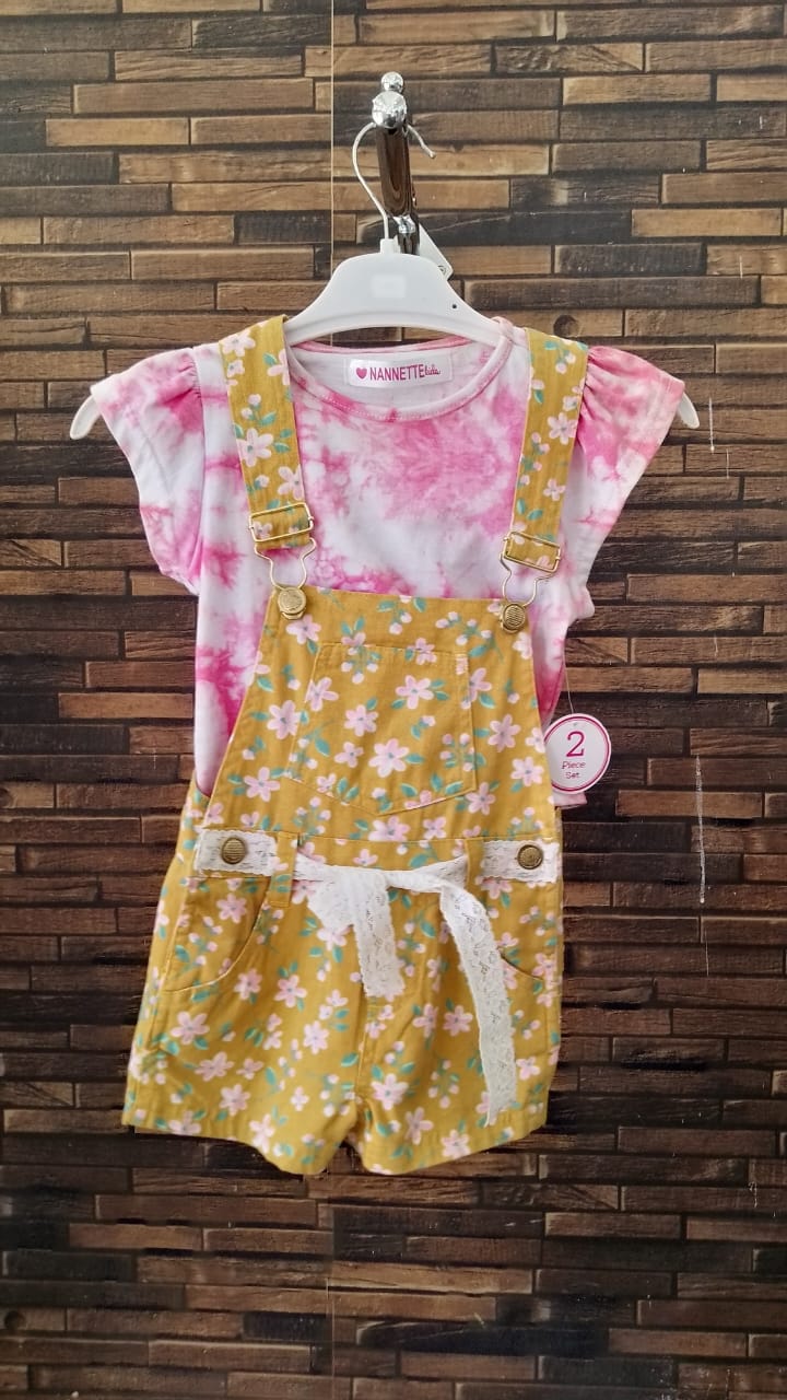 Pink & Mustard dungaree 2-piece set